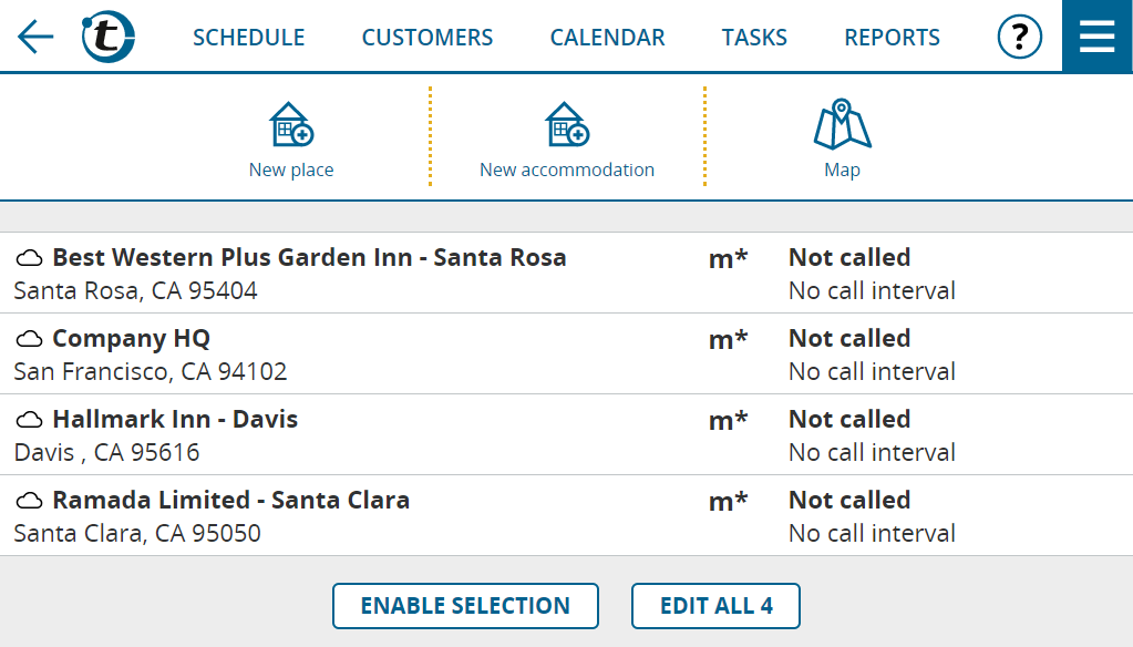 In addition to customers, it is recommended to include important addresses, which are destinations during working hours and should therefore be included in the sales-route planning, as Places. These can be of both professional nature (e.g. company headquarters, warehouse, garage, conference locations, preferred hotels, ...) and for private purposes (e.g. second residence, college/daycare, ...).