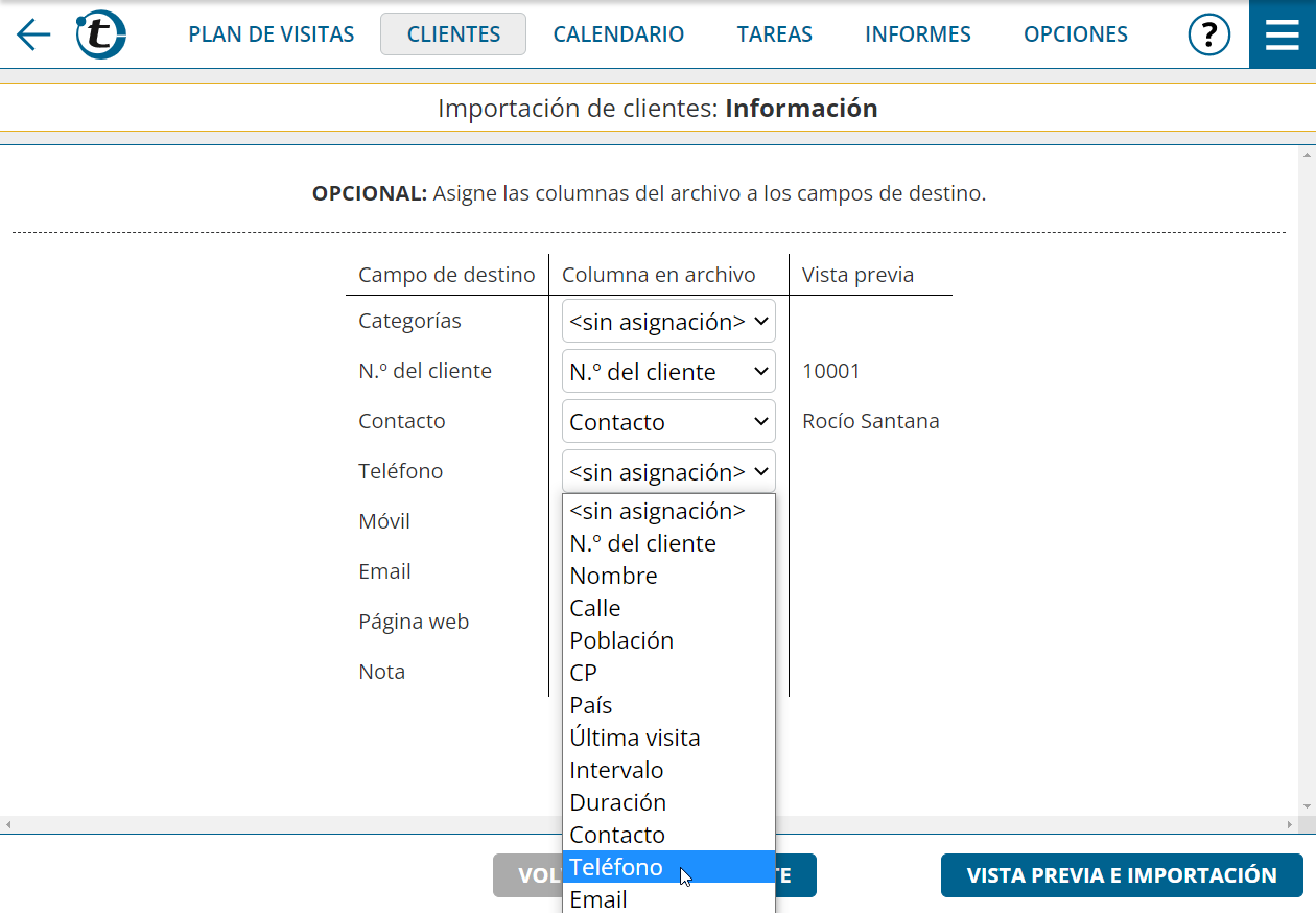 - Opcionalmente: si en su archivo de importación también se encuentran clientes de otros compañeros, consulte Filtrado.