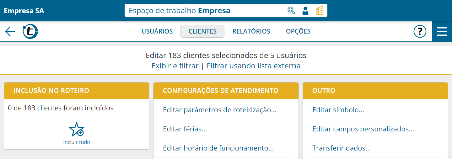 Edição em massa de clientes para múltiplos usuários